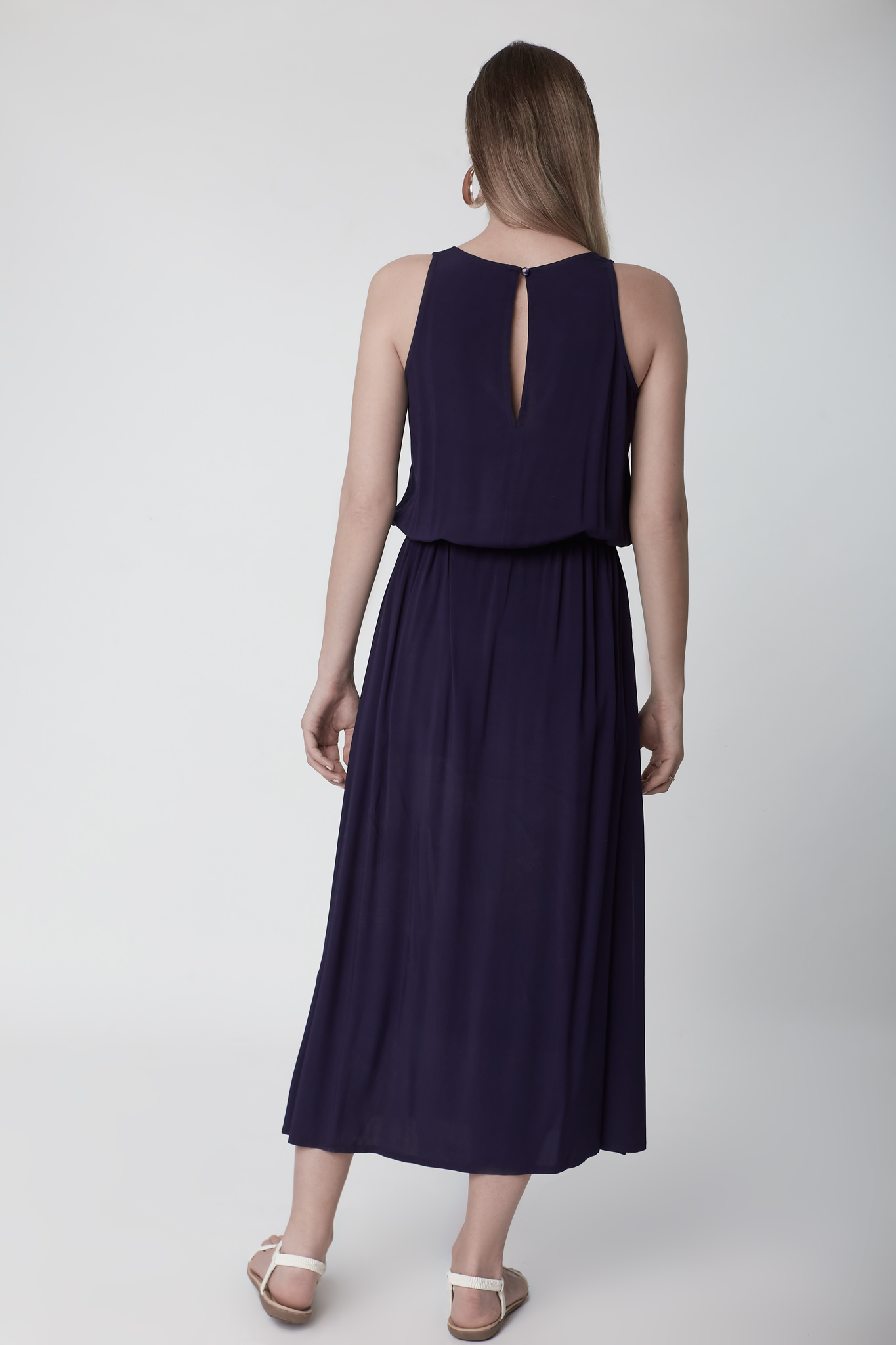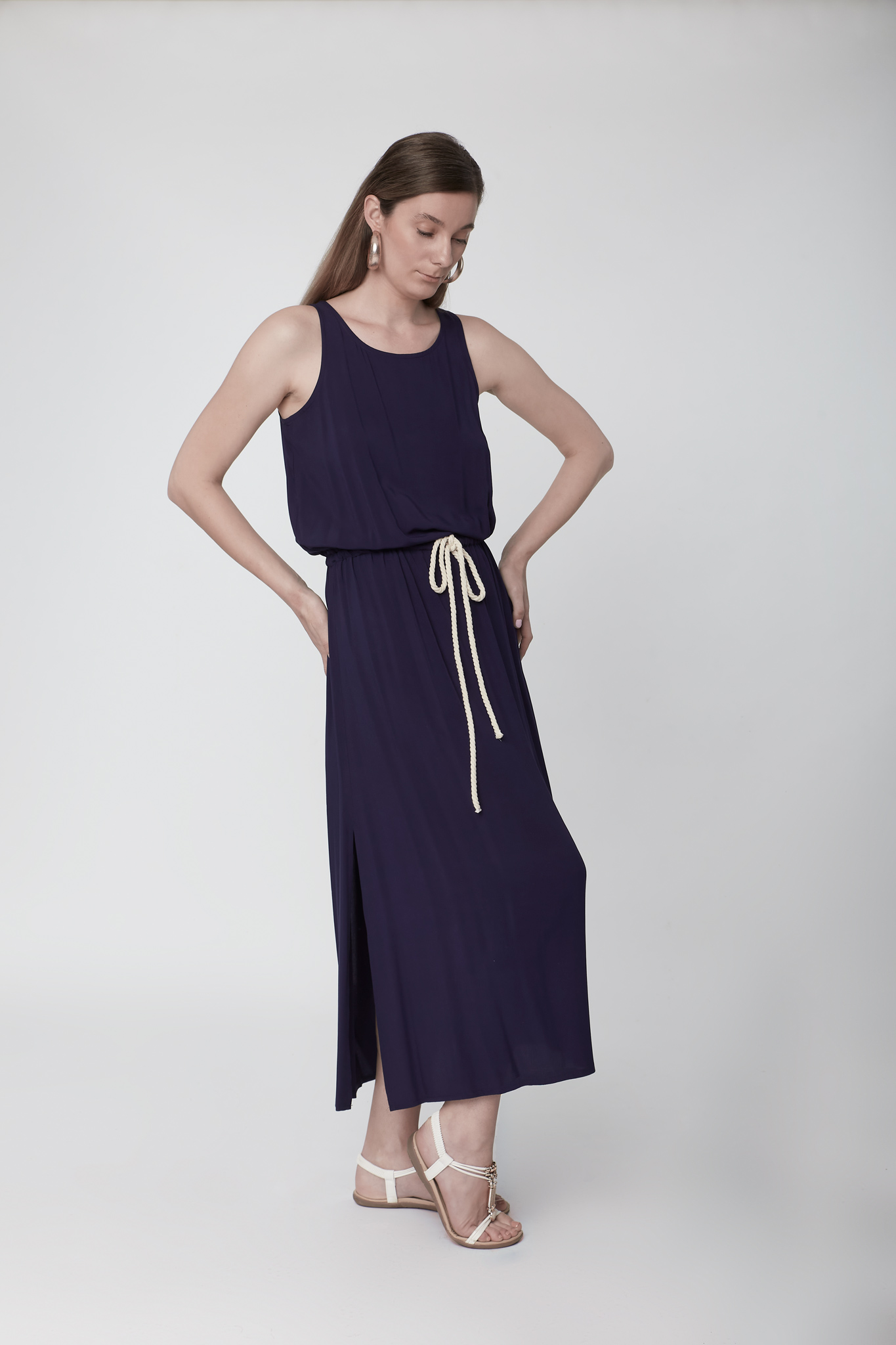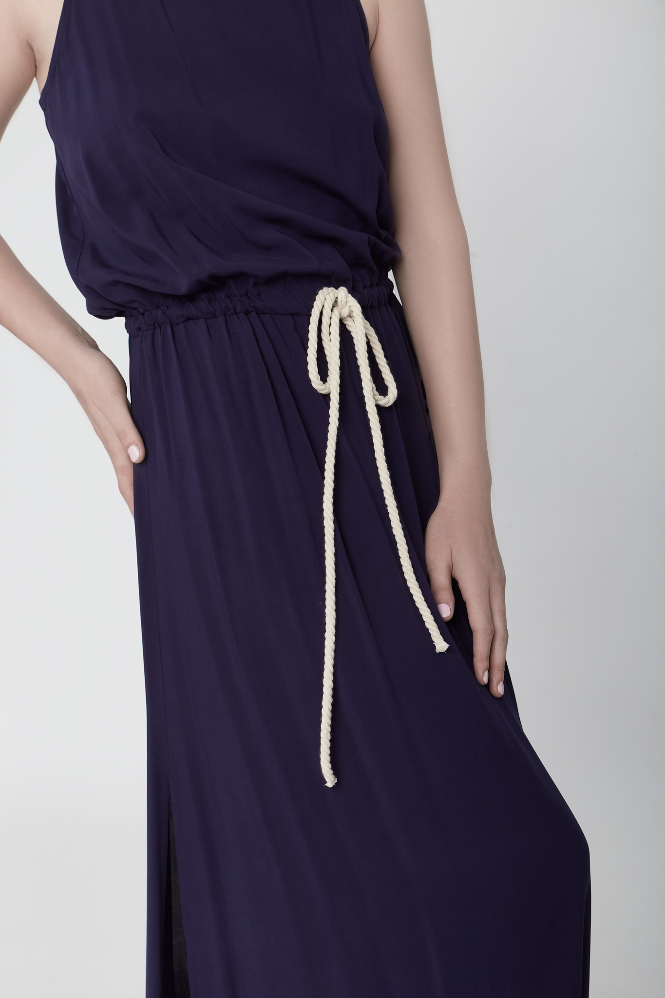 Φόρεμα μονόχρωμο βισκοζ με ζώνη στην μέση από σχοινί