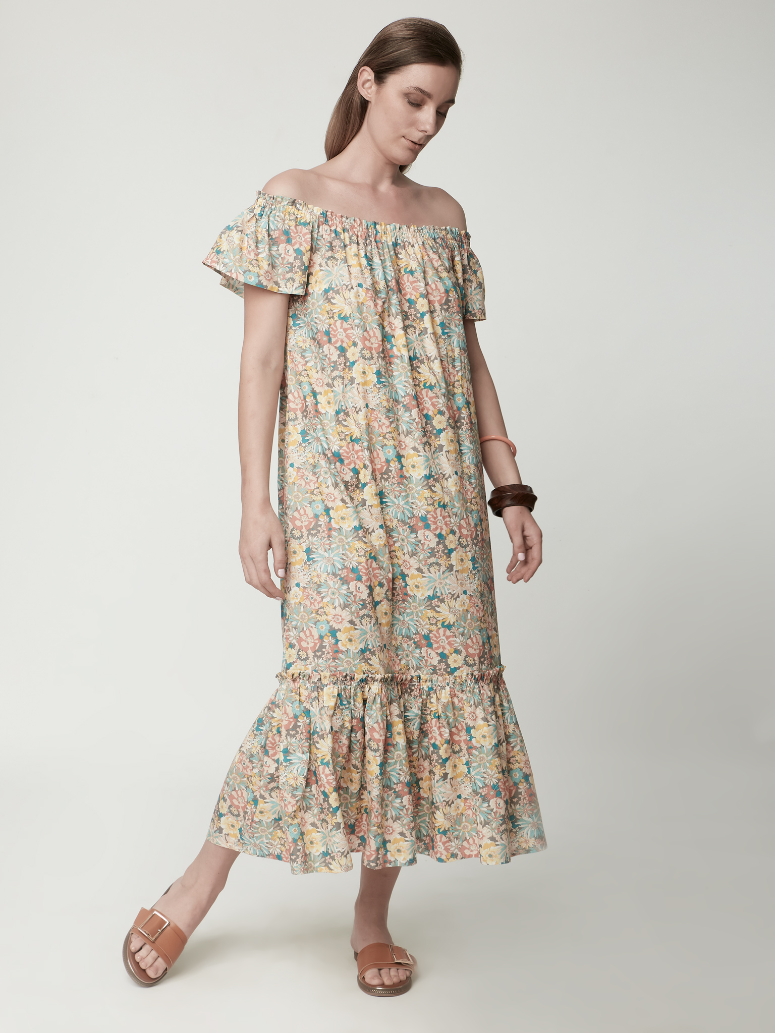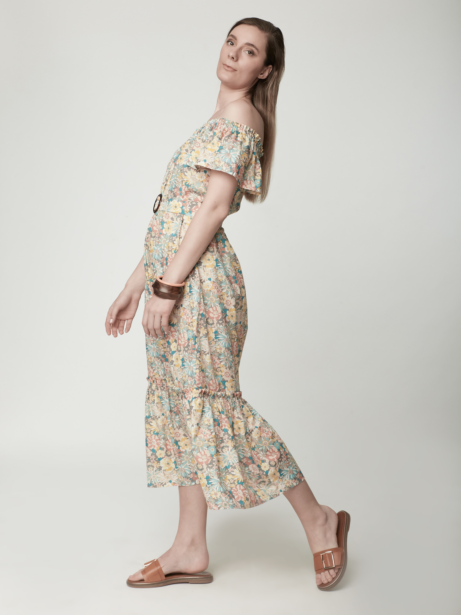 Φόρεμα Μάξι Βαμβακερό One Size με Ζώνη στην Μέση