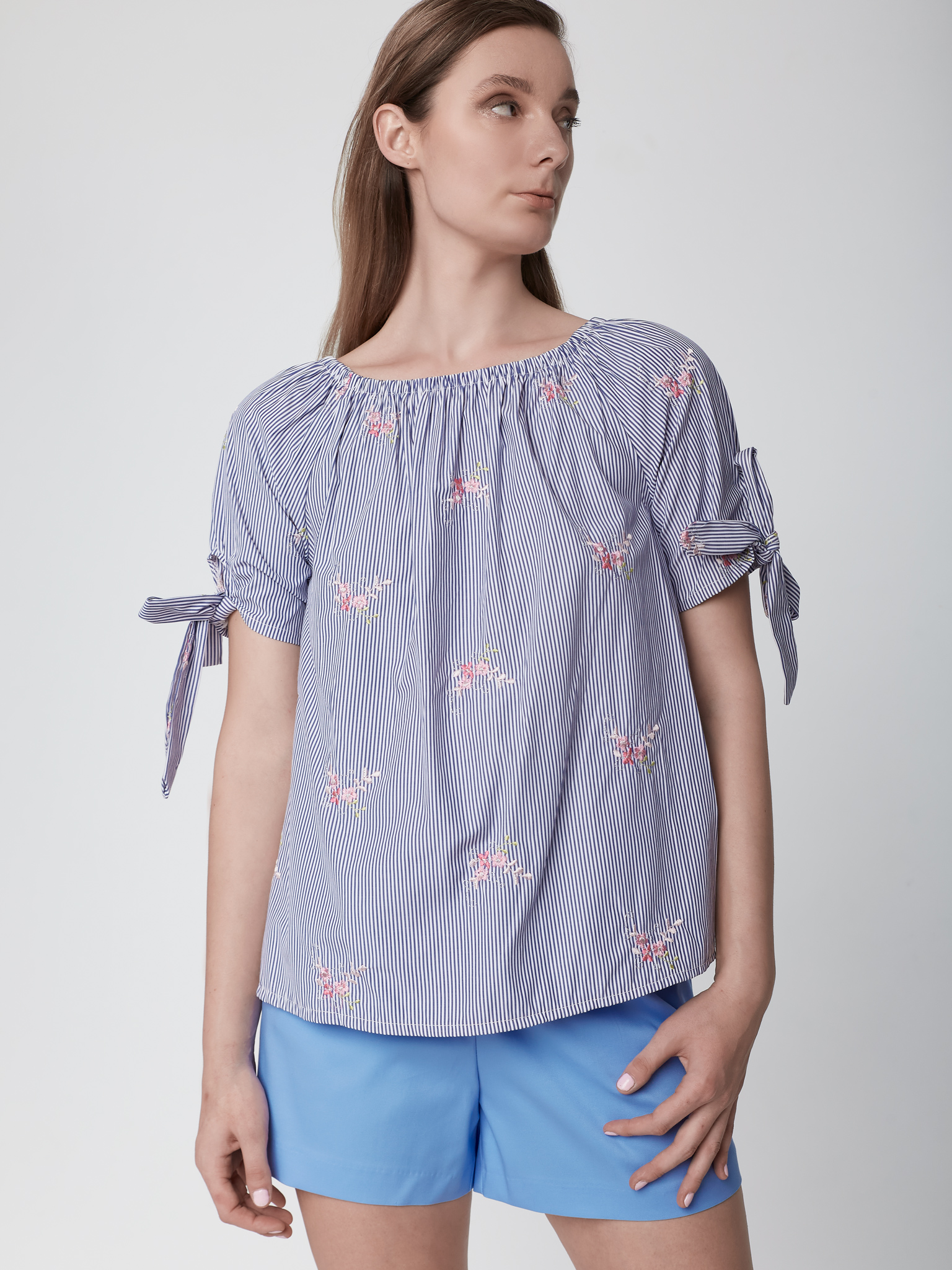 Μπλουζα Εμπριμέ One Size με Φιούγκους στα μανίκια