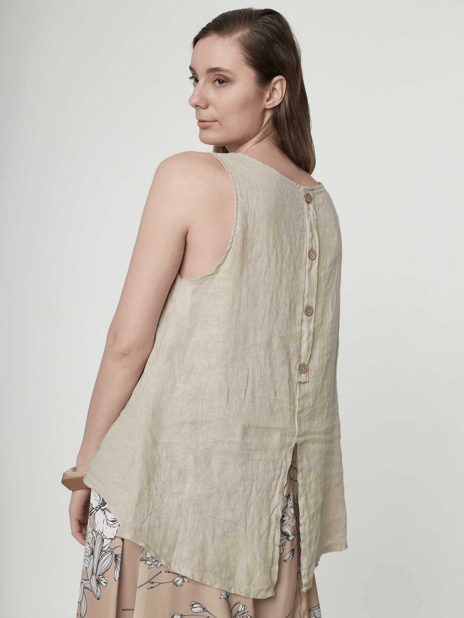 Μπλούζα Λινή Αμάνικη One Size με Άνετη Εφαρμογή & Κουμπιά στην Πλάτη
