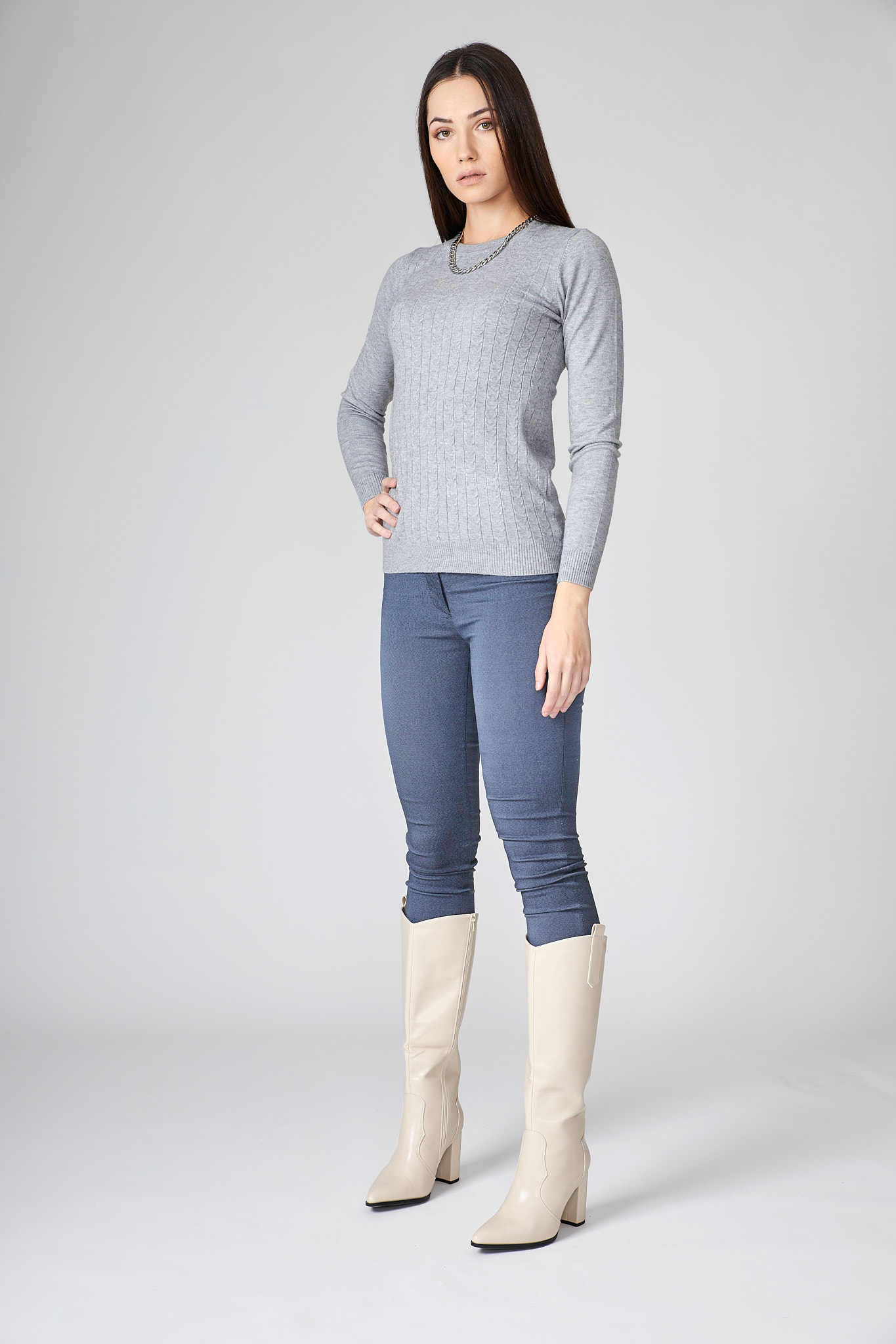 Μπλούζα πλεκτή με ανάγλυφο σχέδιο πλεξούδες με στενή εφαρμογή