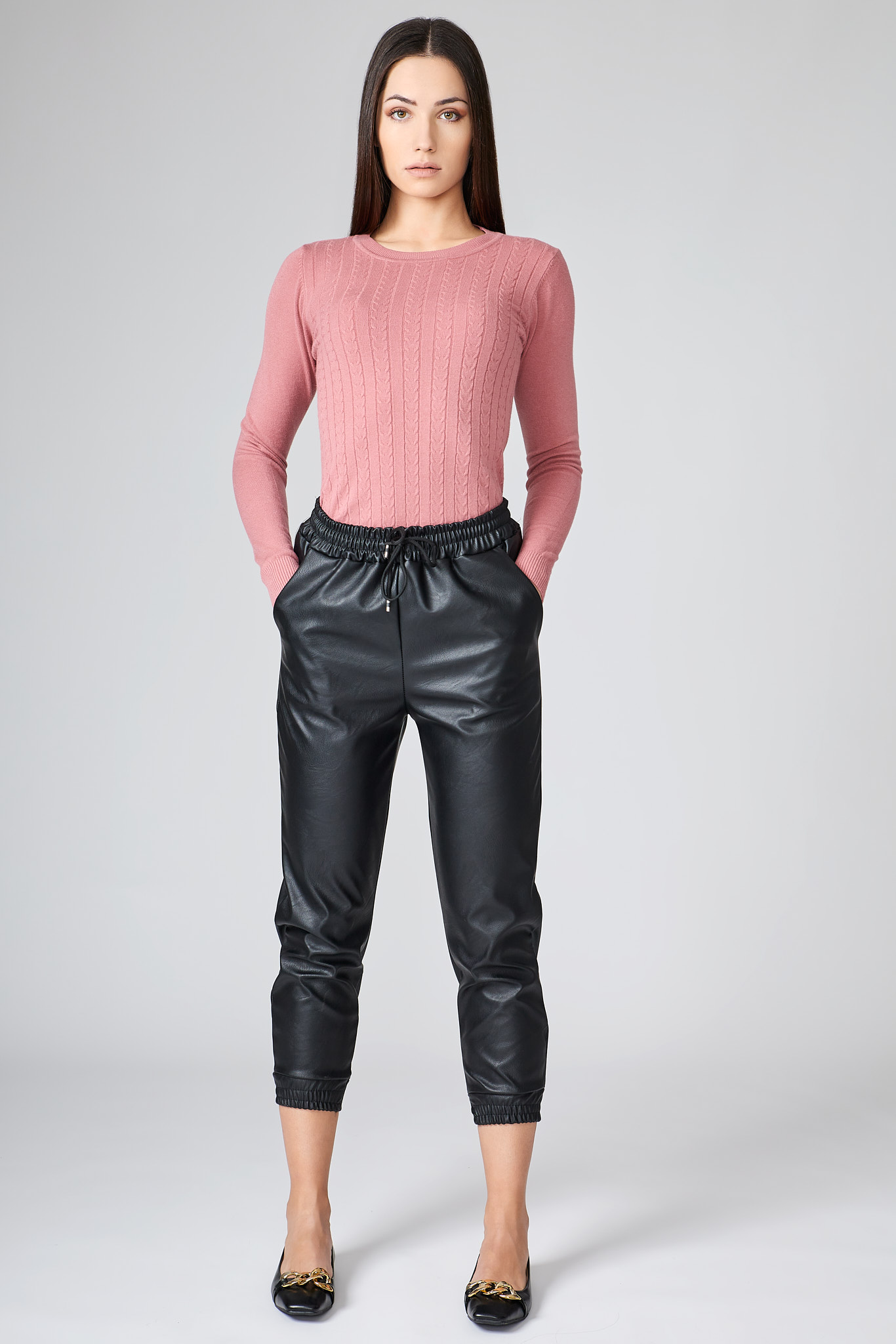 Παντελόνι δερματίνης με λάστιχο στη μέση και στο τελείωμα