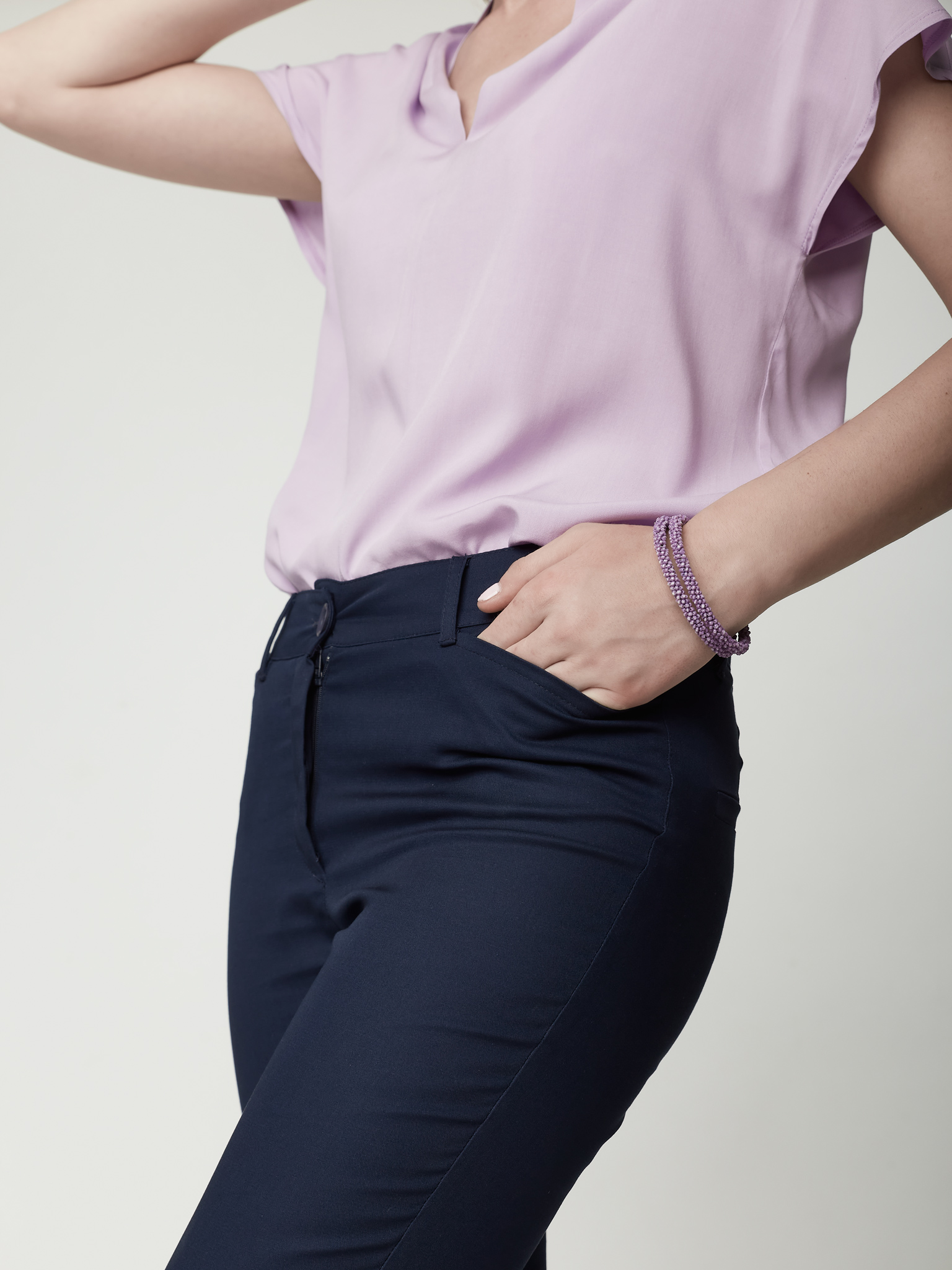 Παντελόνι 3/4 Κάπρι Καπαρτινέ σε Ισια Γραμμή, Πλάγιες Τσέπες Μπροστά & Βαμβακερό Ελαστικό Ύφασμα