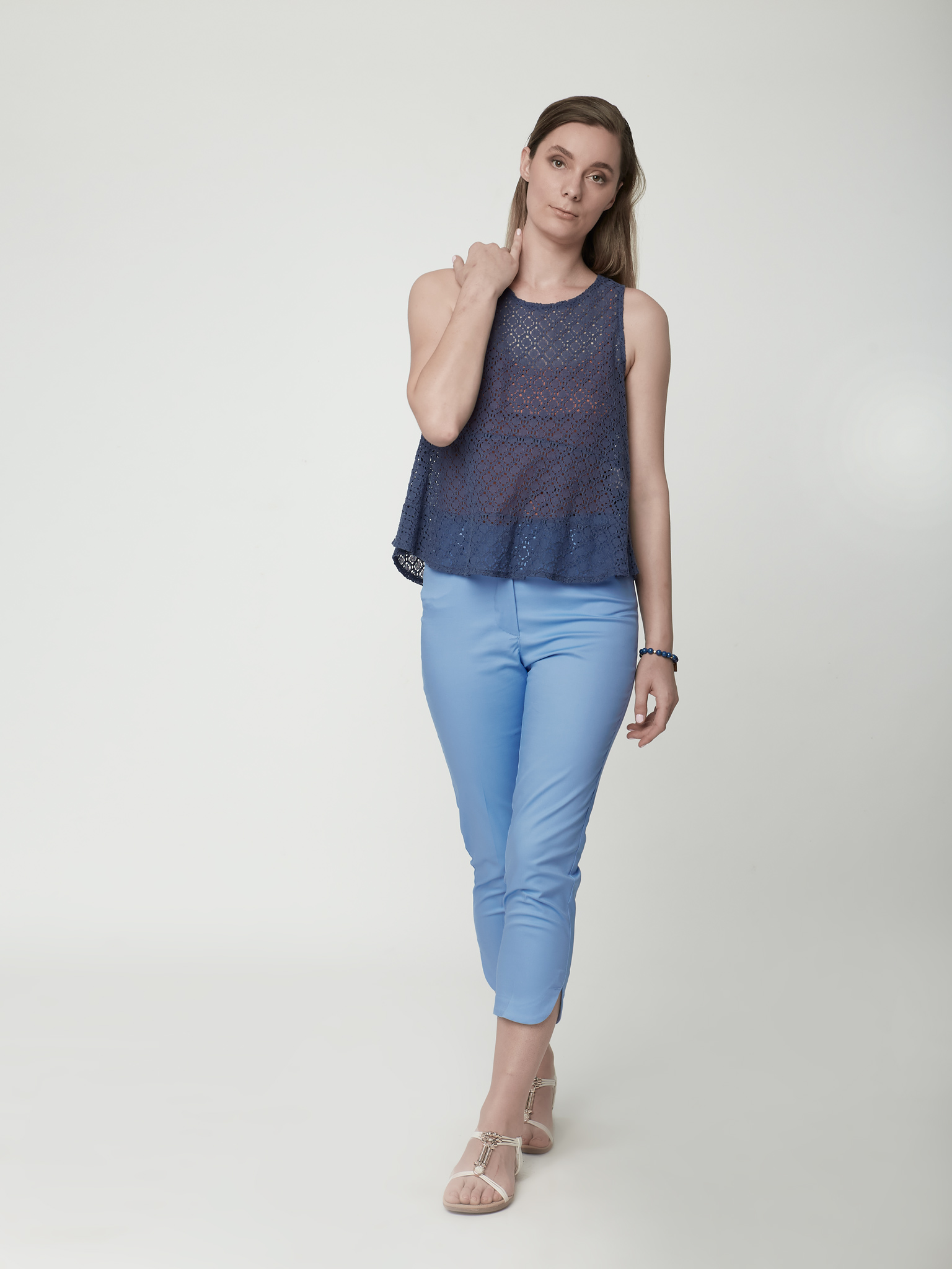 Παντελόνι 3/4 Κάπρι Καπαρτινέ σε Ισια Γραμμή, Πλάγιες Τσέπες Μπροστά & Βαμβακερό Ελαστικό Ύφασμα