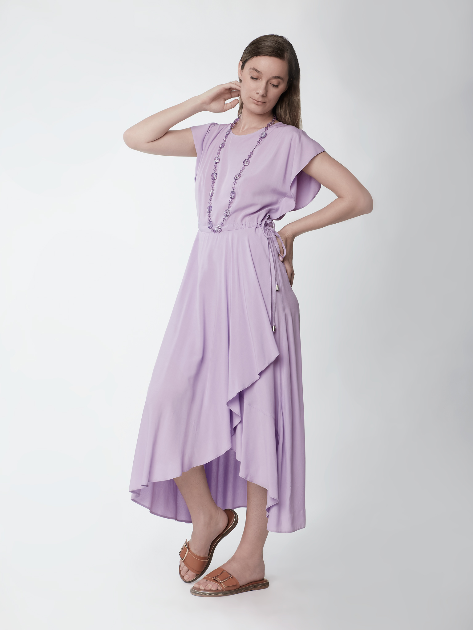 Φόρεμα Μάξι Βισκόζ με βολάν με ζωνάκι στην μέση ζαπονέ μανίκια