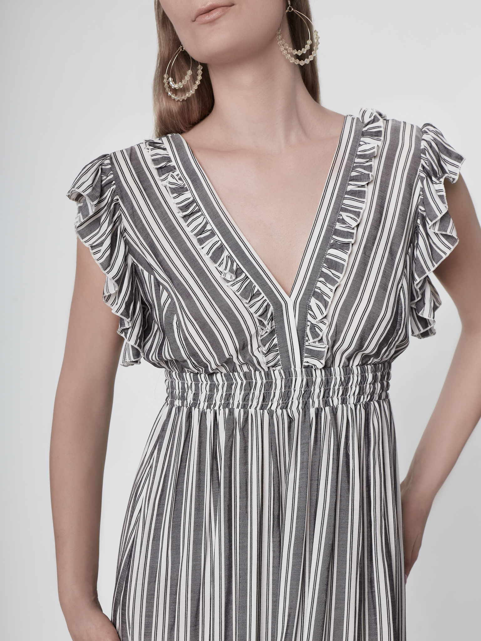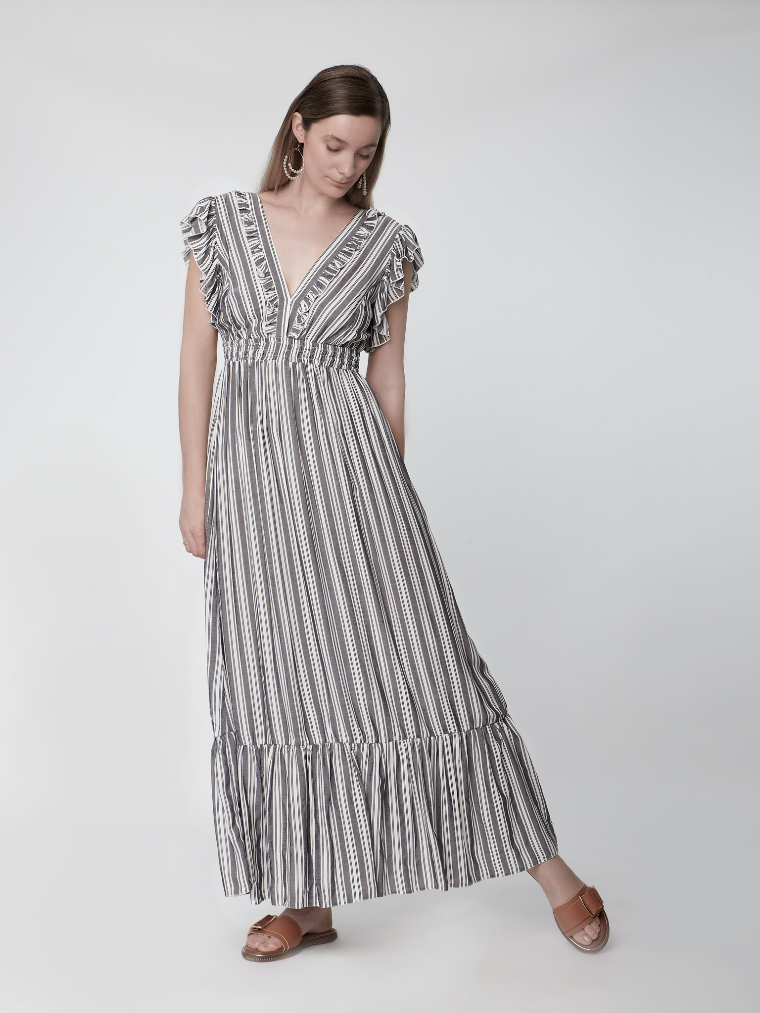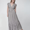 Φόρεμα Μάξι ριγέ BoHo με βολάν στα μανίκια & στην φούστα & λάστιχο στην μέση